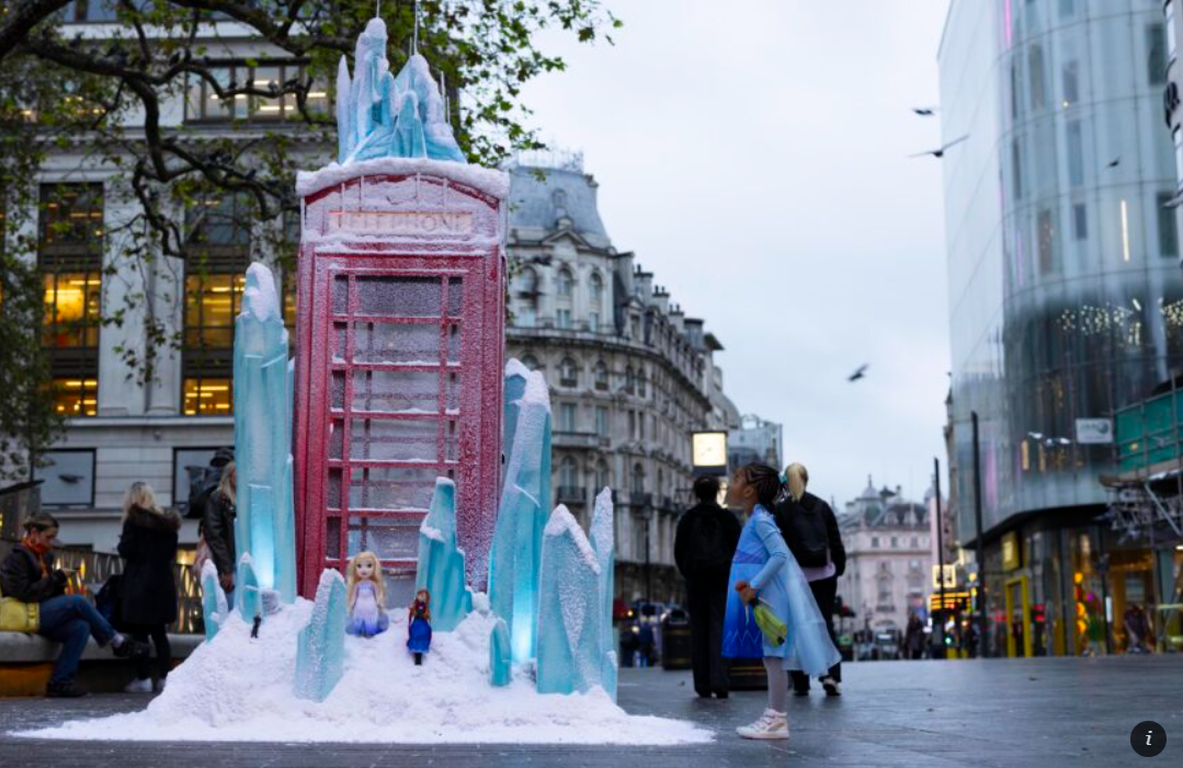 Disney’s team came up with a charming idea where the iconic Piccadilly Circus black cab and a Leicester Square red phone box metamorphosed into Frozen-inspired ice. It’s been a decade since the film made an explosive entrance into the real world and to celebrate its anniversary, the Walt Disney Company came up with this fabulous idea just as Princess Elsa freezes the Kingdom of Arendelle in the hit movie.