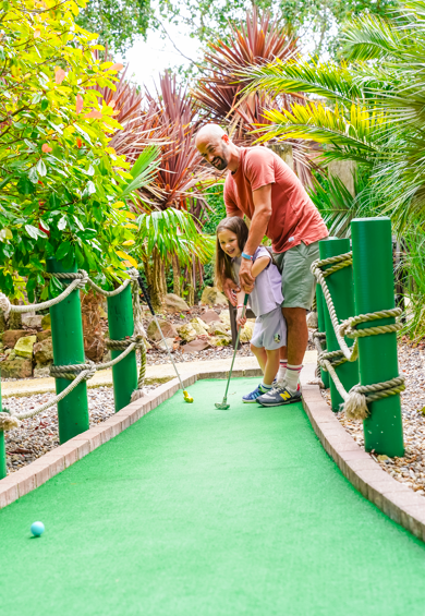 In addition to having access to the sandy beach, children and their parents can splash in the swimming pools, attempt the climbing wall and bounce in the bungee trampoline.