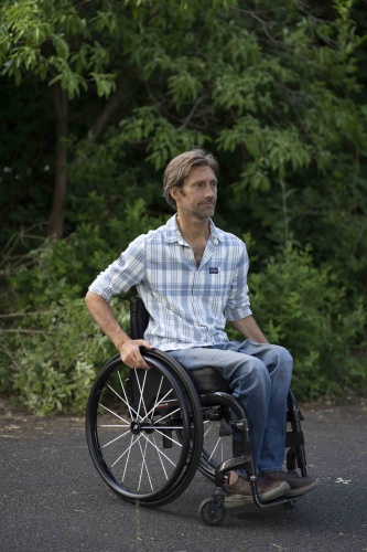 Alex is our guy with cerebral palsy in the wheelchair, Lee has a white and red long-sleeved top on, Muhammad has cream jeans on and Renaldo is the tall black guy in grey.