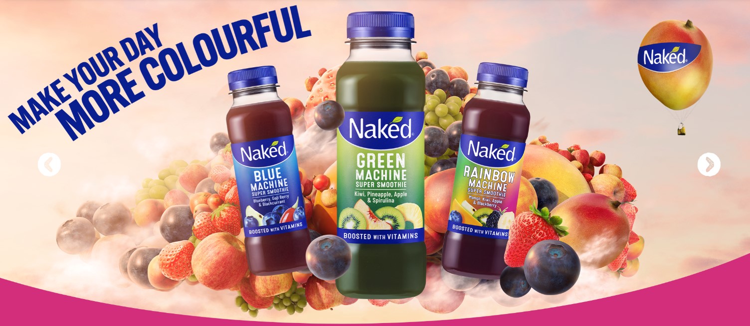 Naked Smoothies love to give their customers a full range of delicious smoothies and juices, so their slogan of “everyone deserves to experience life in full colour” is right on target.