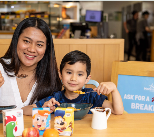 Adults and children alike were able to enjoy a bowl of Corn Flakes, Rice Krispies or Coco Pops before 11am, with a choice of dairy and non-dairy milk, in any one of Morrisons 397 cafés.