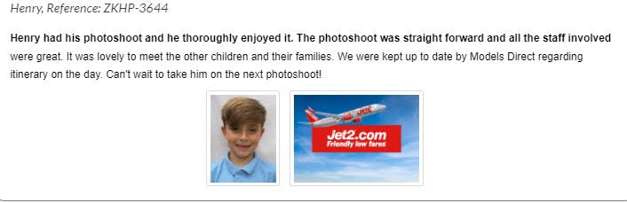 “Georgina really enjoyed the experience on Tuesday. The Jet2 staff were really friendly and helpful. Thanks Models Direct, we look forward to the photos!”