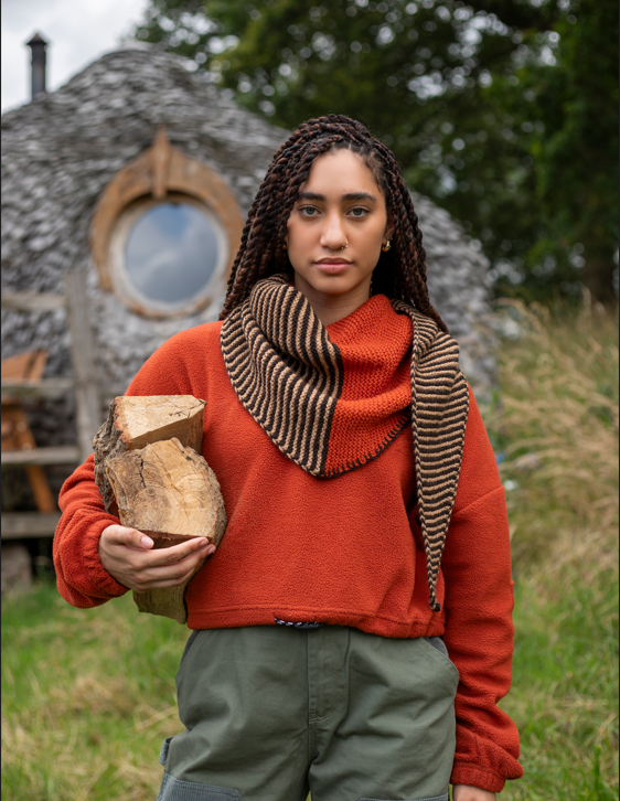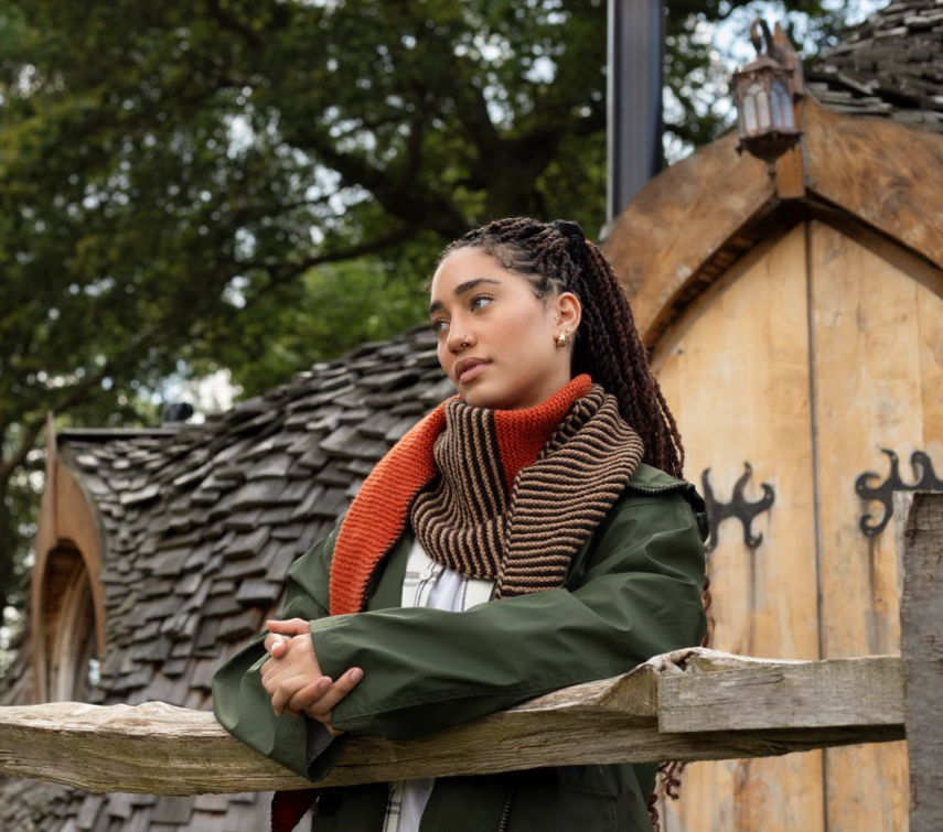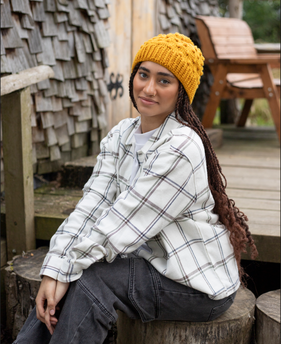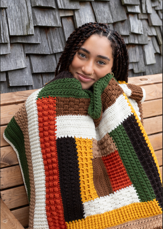 As part of the modelling assignment, Taquana got to snuggle up to an oh-so-sweet patchwork blanket, wear an okra woolly hat, and don a multicoloured jumper, and a warm scarf, all perfect for the chiller weather ahead.
